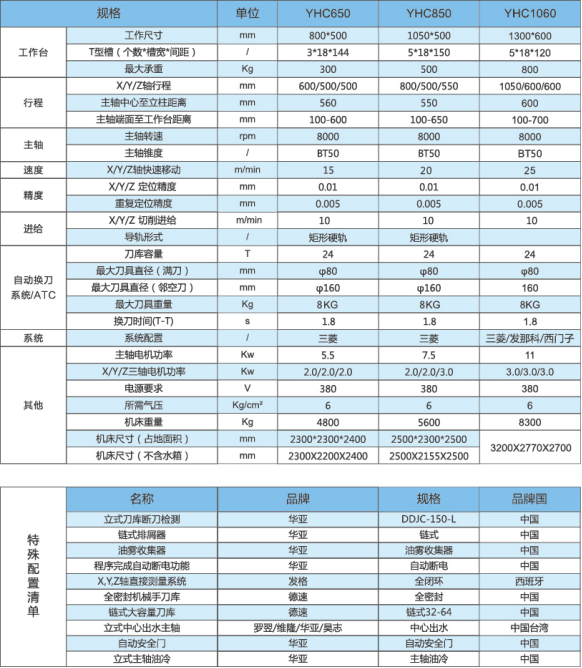 硬軌/兩線一硬立式加工中心YHC1060